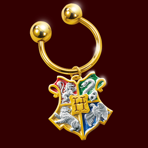 Klíčenka vysoké hodnoty a kvality. Znak Bradavic z filmů o Harry Potterovi obsahuje symboly všech čtyř kolejí - Nebelvír, Zmijozel, Mrzimor a Havraspár. Pozlaceno 24 karátovým zlatem.